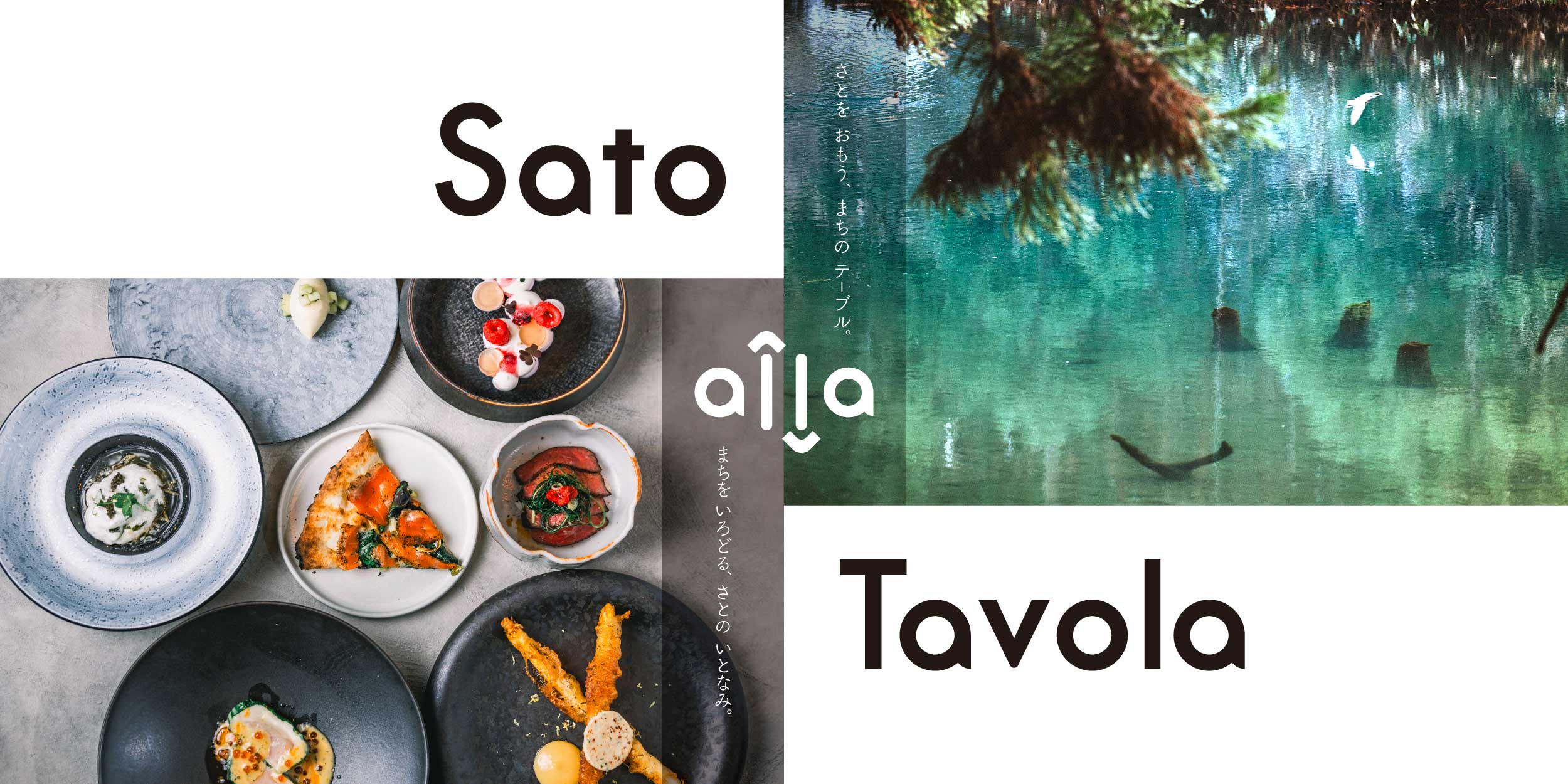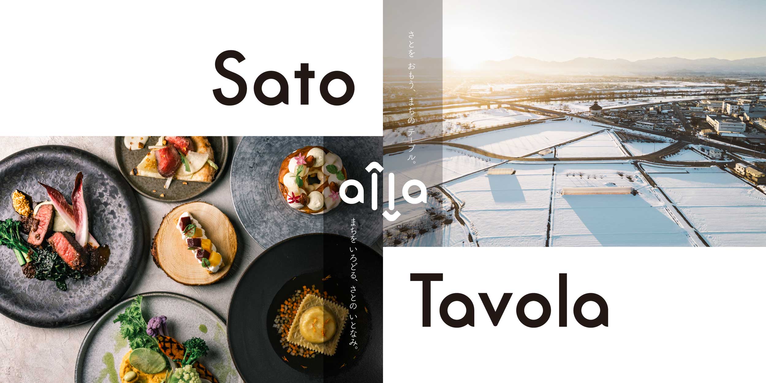 「Sato alla Tavola」の「Sato」は、ふるさとのさと(里・郷)、「alla Tavola」は「to table」の意を持つイタリア語。「ふるさとをあなたのテーブルへ」というメッセージが込められています。「alla」は反対から読んでも「alla」。一方向ではなく、テーブルからふるさとへとつながるという意味も秘めています。