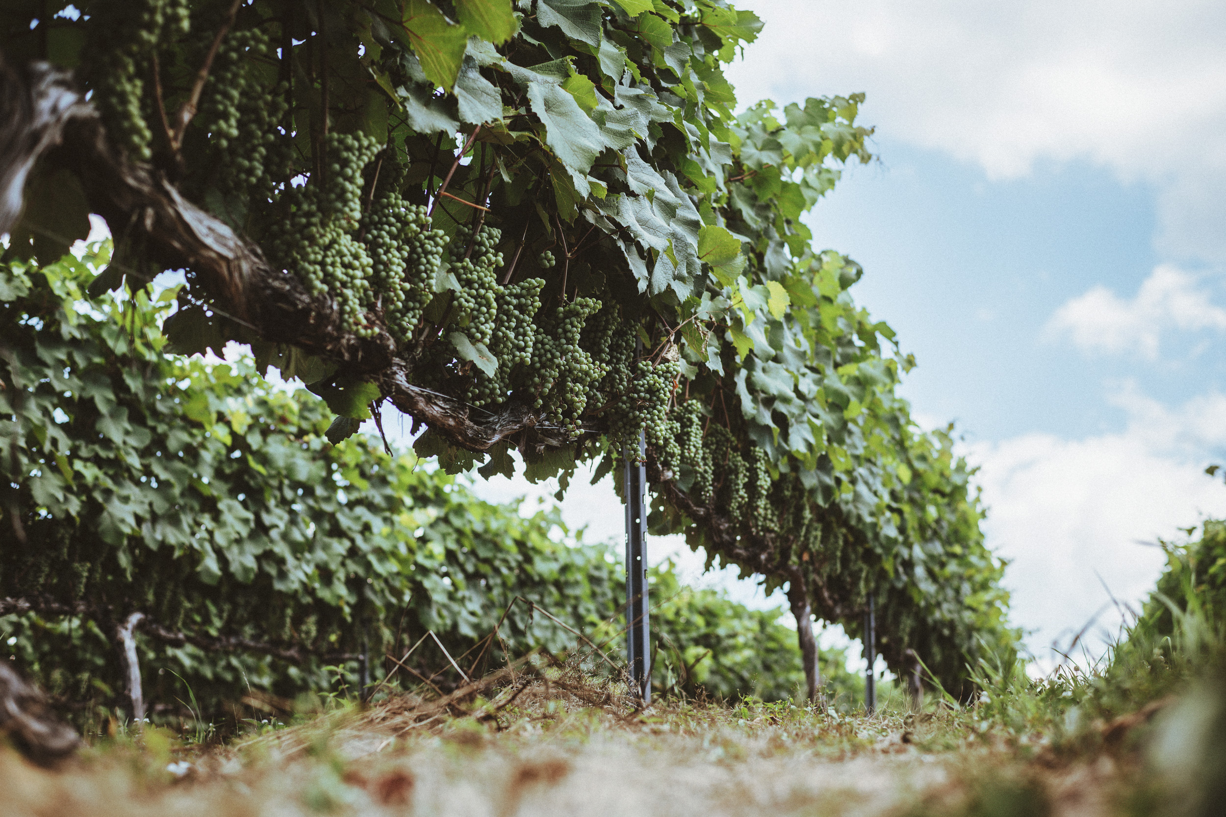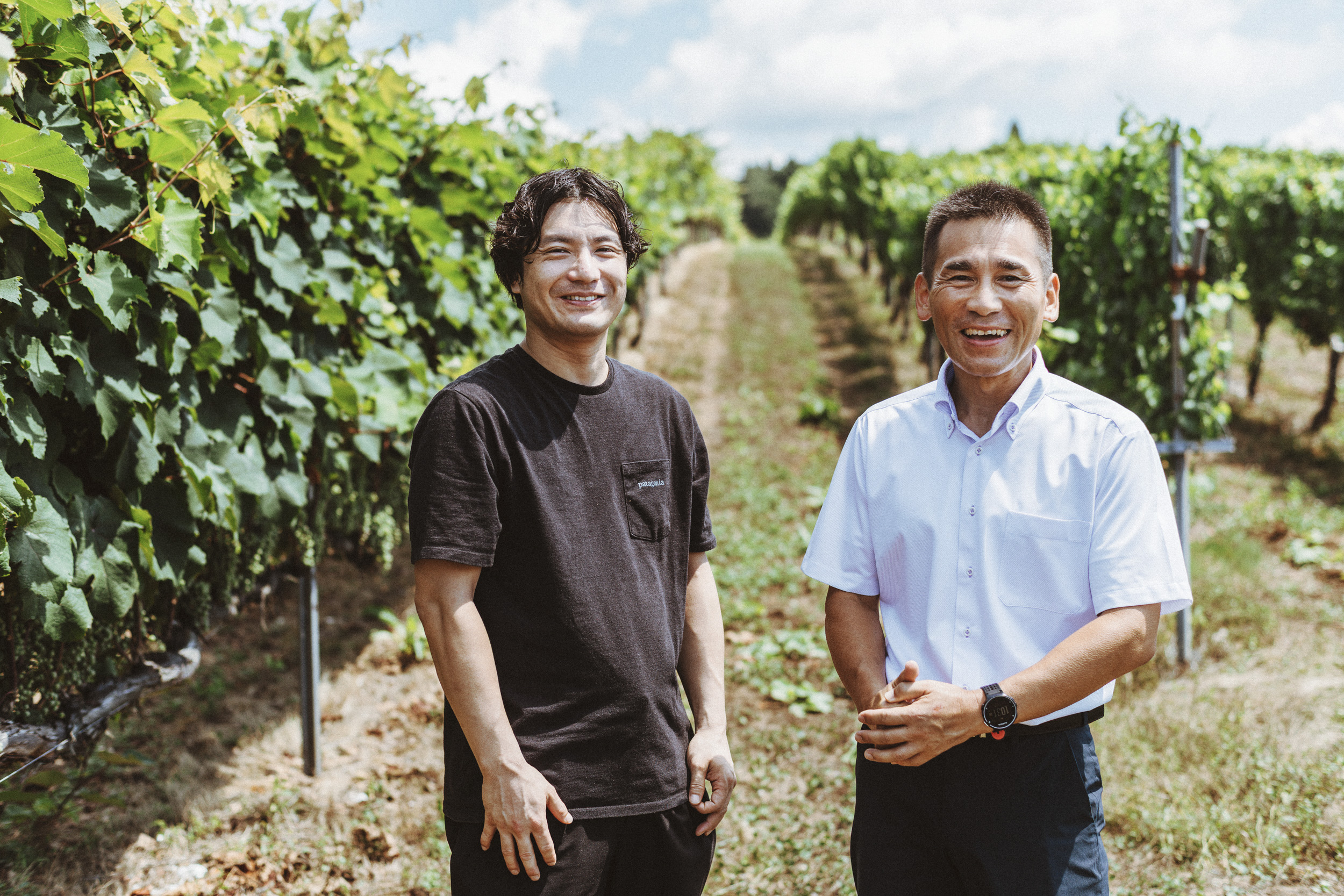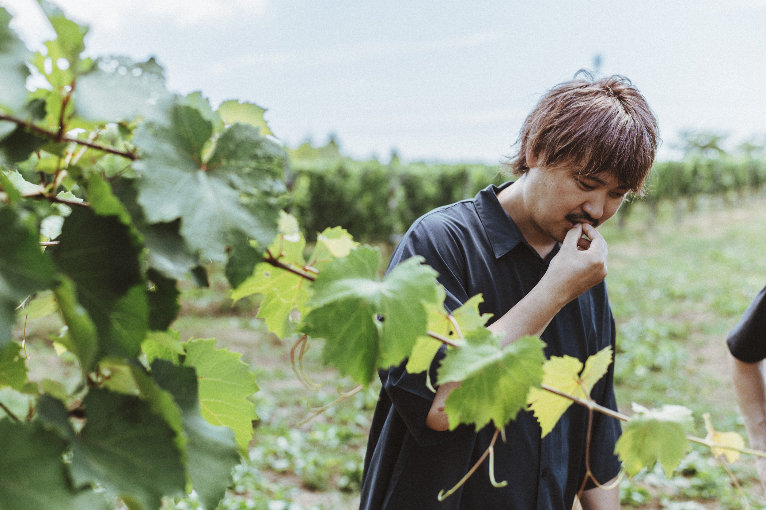 私たちが伺ったのは7月。まだ緑色をした粒を、ソムリエの笹生さんや池田シェフが口に含みます。酸味はあるものの、想像以上にみずみずしさを感じます。やがて8月に実は濃い紫色へと変わり、9月から10月にかけて収穫をするそうです。