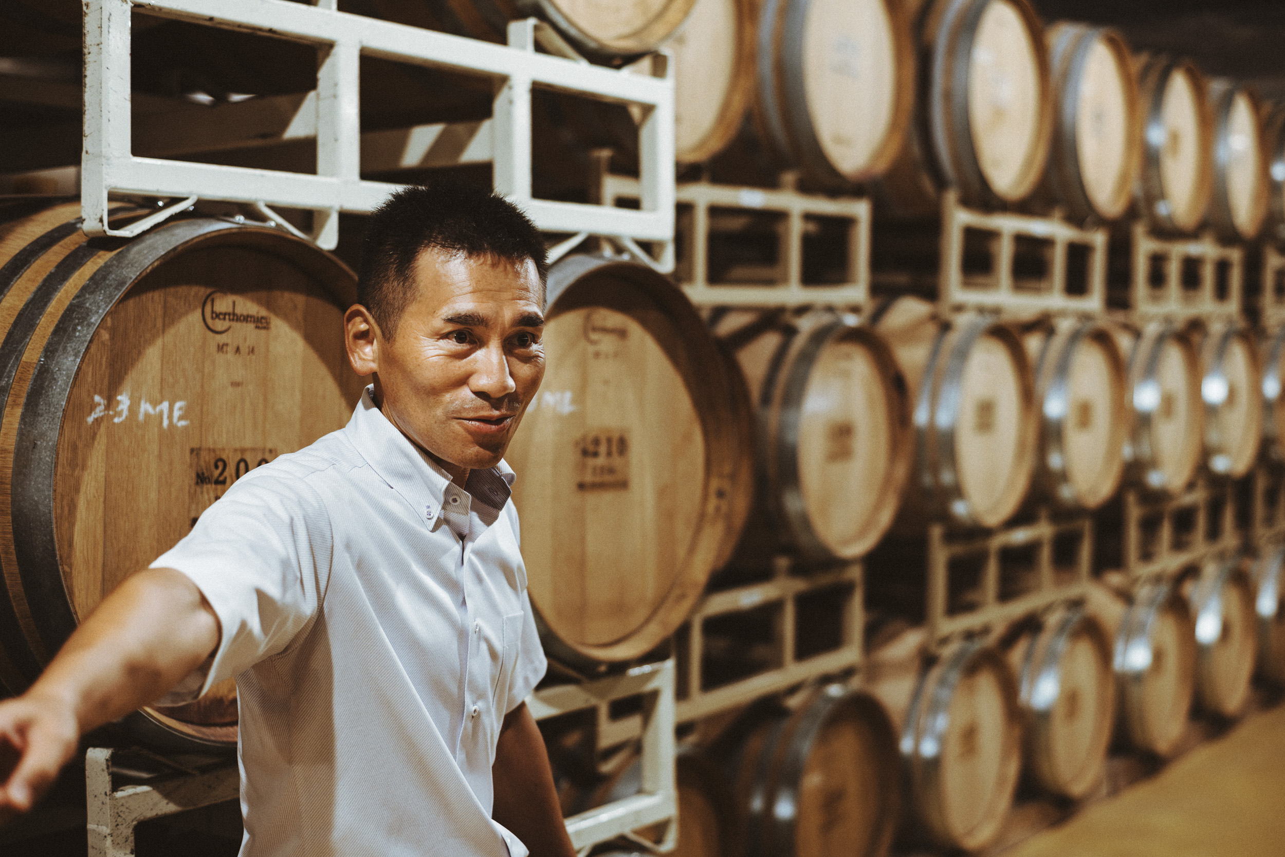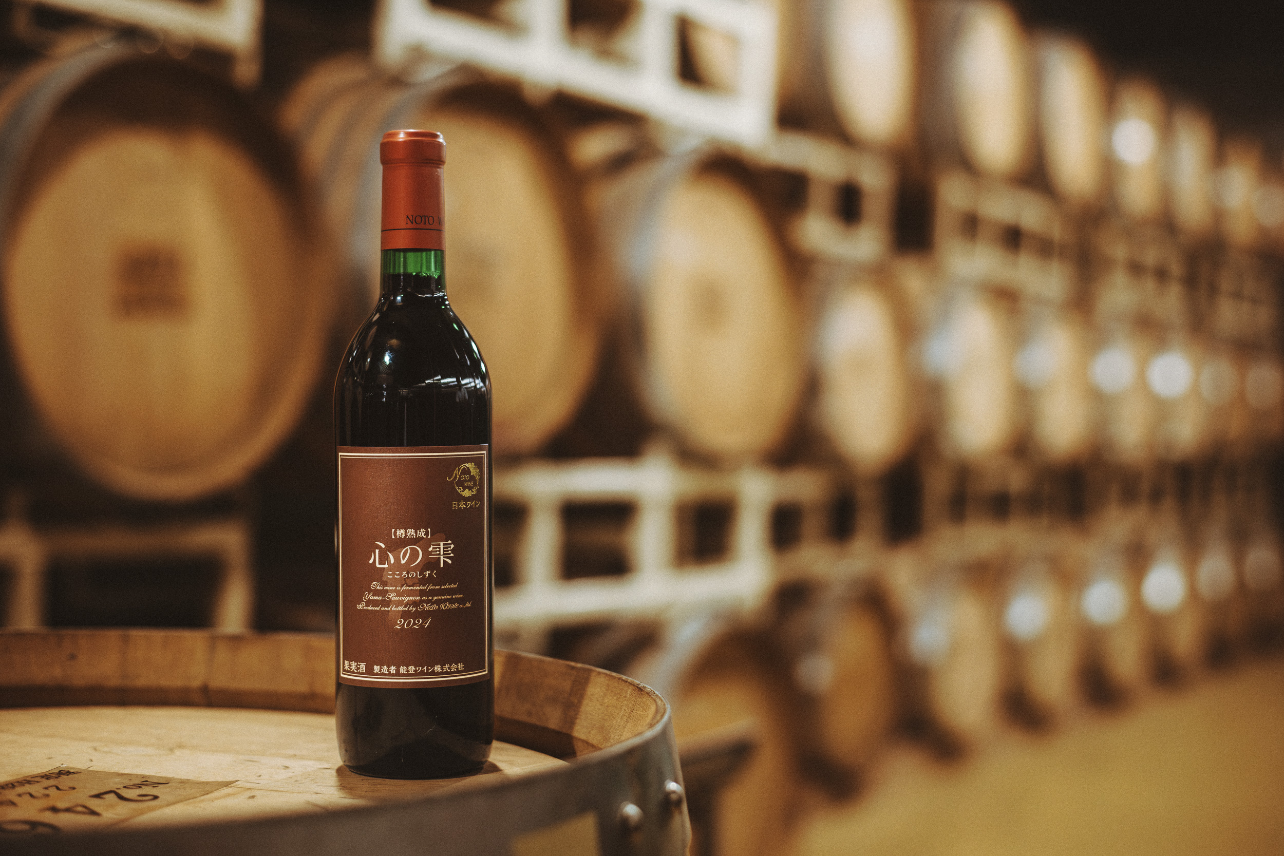 「完熟を超えた過熟の状態まで待ってから収穫します。バナナで言えば皮が黒くなった状態で収穫すると思ってください。過熟したヤマ・ソーヴィニヨンは糖度が20度を超え、収穫するだけで手がベタベタになるほど甘いんです」と丸山さん。ヤマ・ソーヴィニヨンで仕込んだ赤ワインは、野性味ある風味でジビエ料理とよく合うのだといいます。オーク樽で半年熟成させた赤ワイン「心の雫」は、国内コンクールで評価を受けた一本。著名なワイン漫画でも紹介されるなど、多くの人の心を惹きつけてやみません。