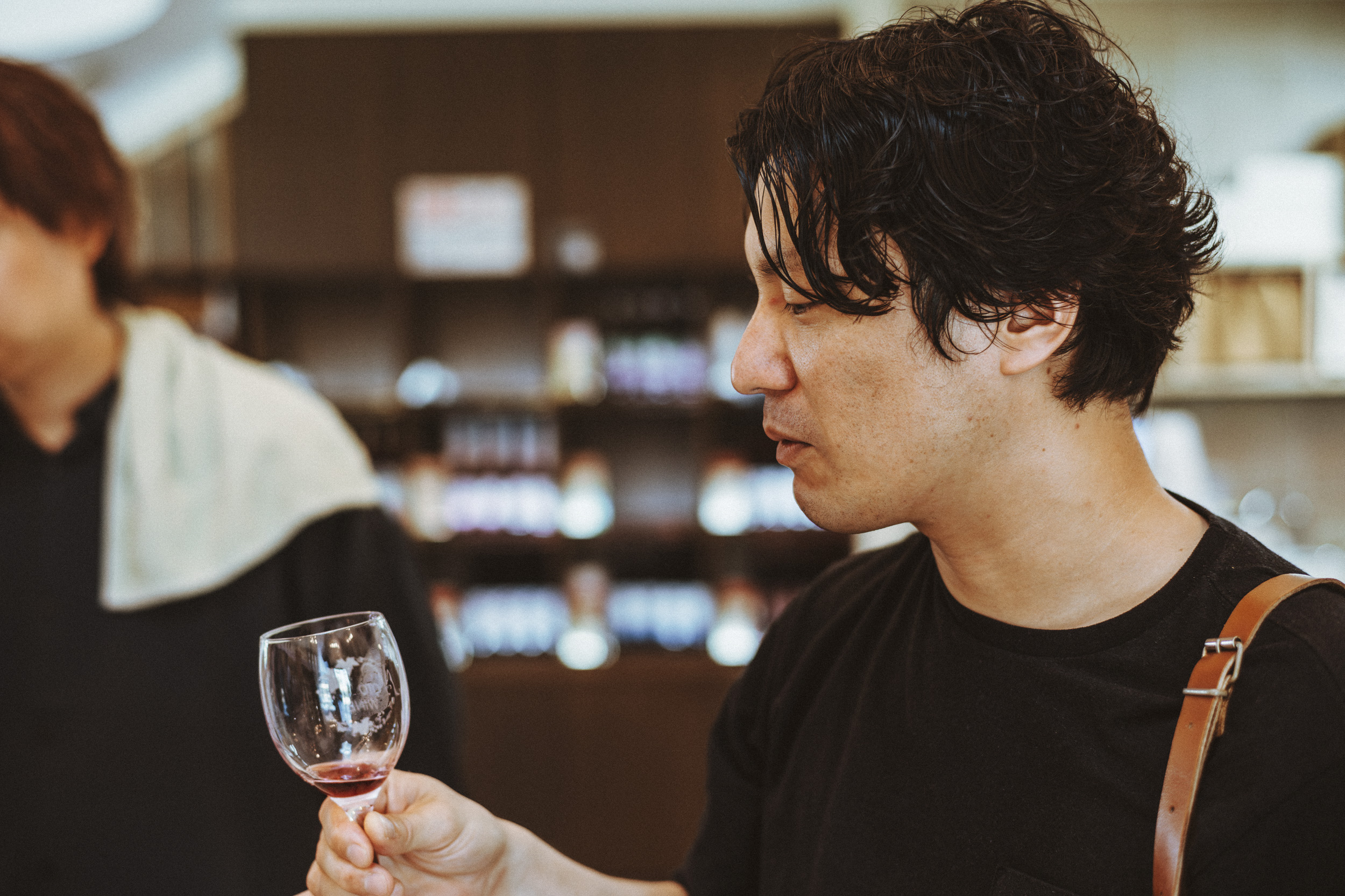 もうひとつ、能登ワインが得意とするのが「マスカット・ベリーA」のワイン。こちらも日本固有のぶどうです。梅やグミのようなポップな甘さを感じます。「マスカット・ベリーA」でできた赤ワインを口にすると、ソムリエが「最初に丸みがありますね」とつぶやき、メンバーも頷きます。